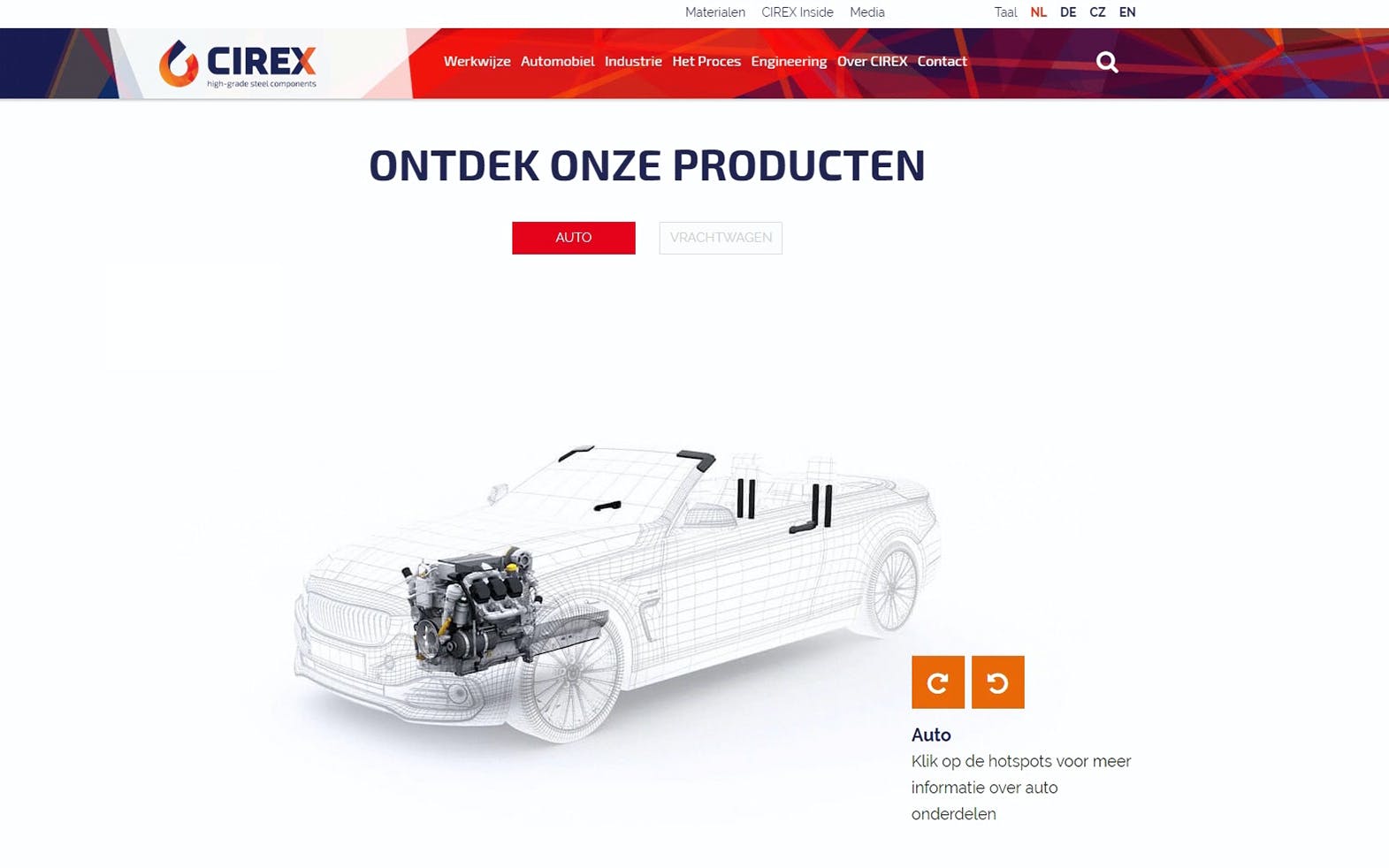 In samenwerking met reclamebureau Twentse Storm heeft C4Real een 3D product explorer ontwikkeld voor CIREX. Hiermee kunnen de (potentiële) klanten van CIREX als het ware door een auto of vrachtwagen heen kijken en in één oogopslag zien hoe de producten van CIREX toegepast worden. Zo worden klanten op een efficiënte manier geïnformeerd over ál hun producten en is meteen de meerwaarde van hun producten in het grotere geheel duidelijk. Hiermee zorgen ze niet alleen voor heldere product omschrijvingen, maar creëren ze een extra verkoopkans, omdat de klant gelijk ziet welke producten ze nog meer bieden. Kennisoverdracht en sales conversie in één.